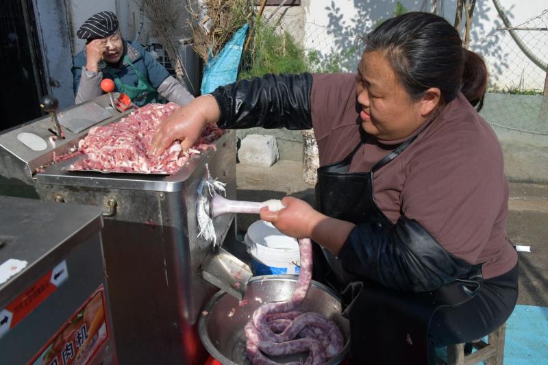 随着新年到来,当地各种腊味迎来销售旺季,经营户们忙着生产加工,满足消费者需求。