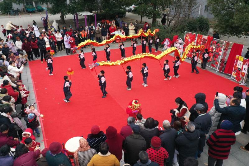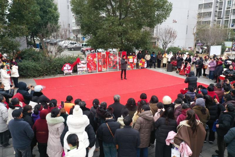 2025年12月31日,淮安市洪泽实验幼儿园联合高良涧街道杨码社区举办“萌娃贺元旦•文化进社区”主题活动,幼儿园的孩子们身着喜庆的服装,载歌载舞喜迎新年的到来。