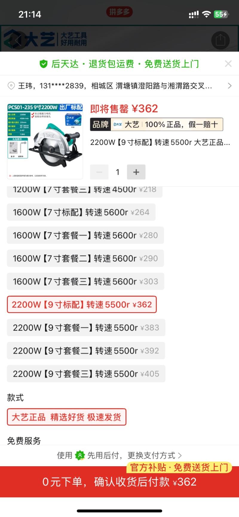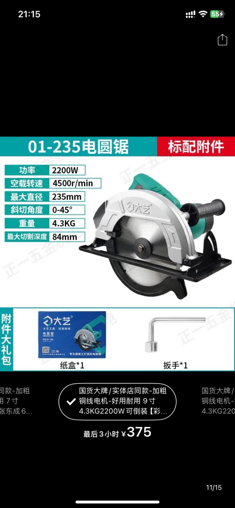 价格:290元 [大艺9寸电圆锯亏本处理]