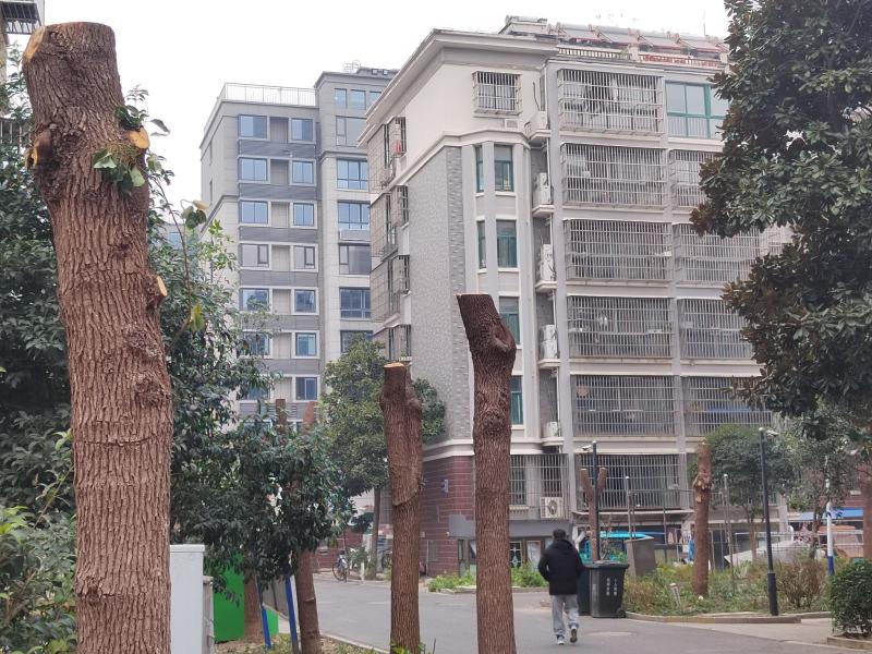 北京小区也是的,我真不知道,他们是修树还是毁树。