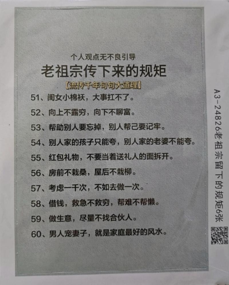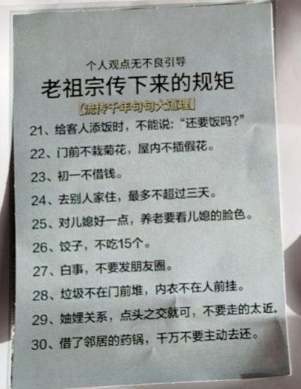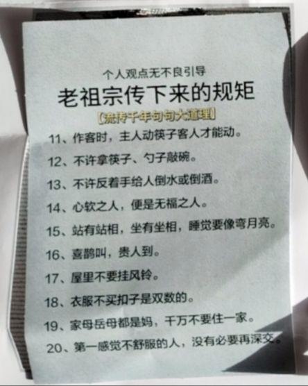 老祖宗传下来的老话、老规矩